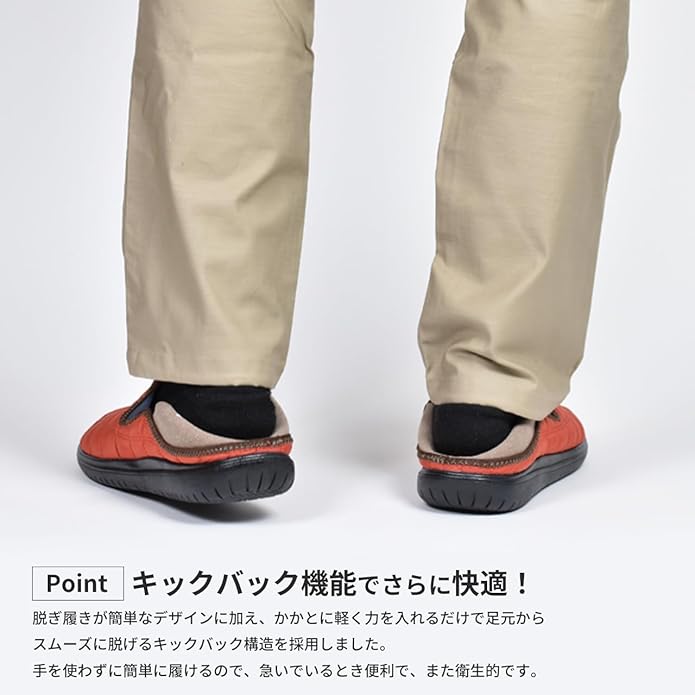 ★かかとが踏めるキックバックタイプで脱ぎ履き簡単。