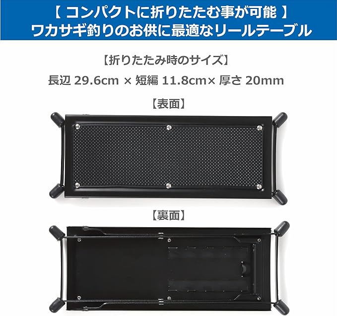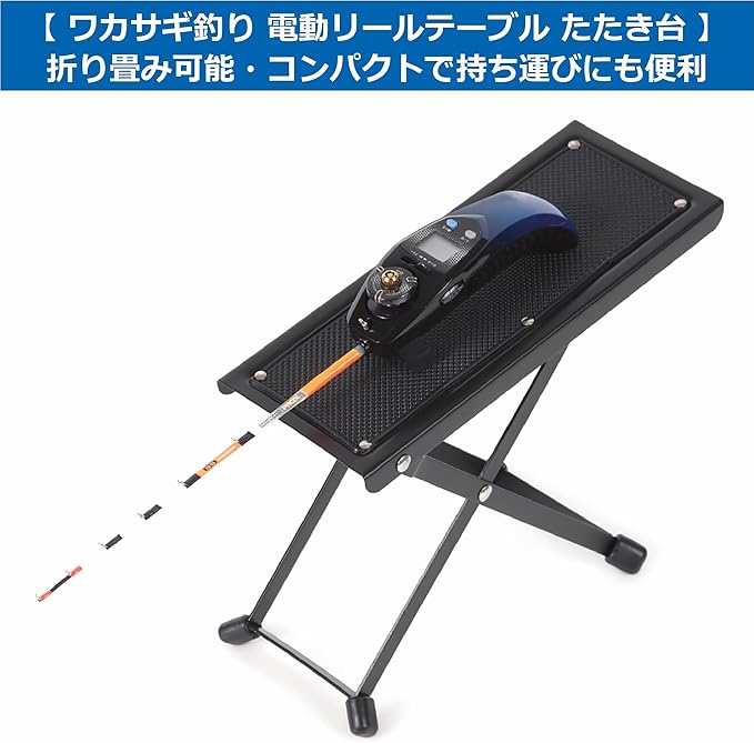 【材質】スチール(本体部)・ラバーゴム(脚部分) どんな電動リールにもご使用頂ける、ワカサギ釣りのお供に便利なたたき台、リールテーブルです。