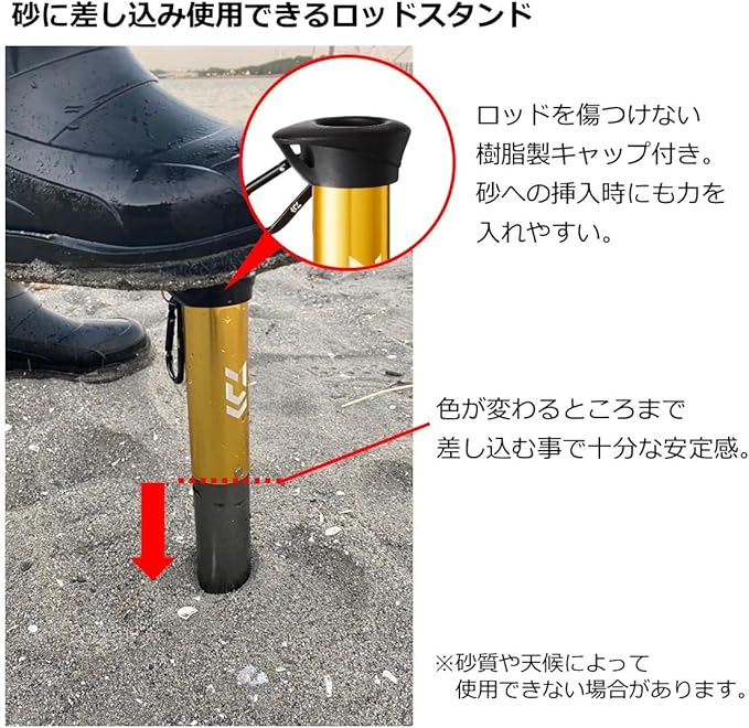 砂浜に差し込み固定ができるロッドスタンド(対応ロッド径33mmまで)