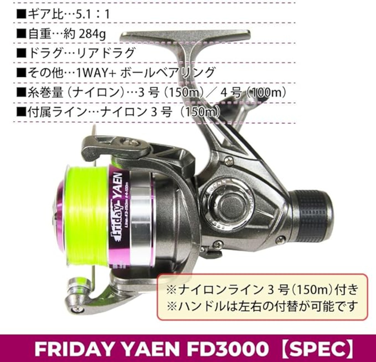 モデル名 おり釣具 ヤエン釣り用 ライン付き スピニングリール フライデー ヤエン FD3000