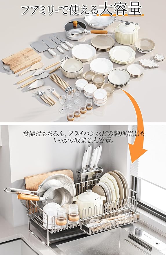 錆びにくく耐久性抜群:多くの購入者が水切りラックの錆びを心配していますが、ADBIUの水切りラックは高品質ステンレスを採用し、長期間使用しても錆びの悩みを解消します