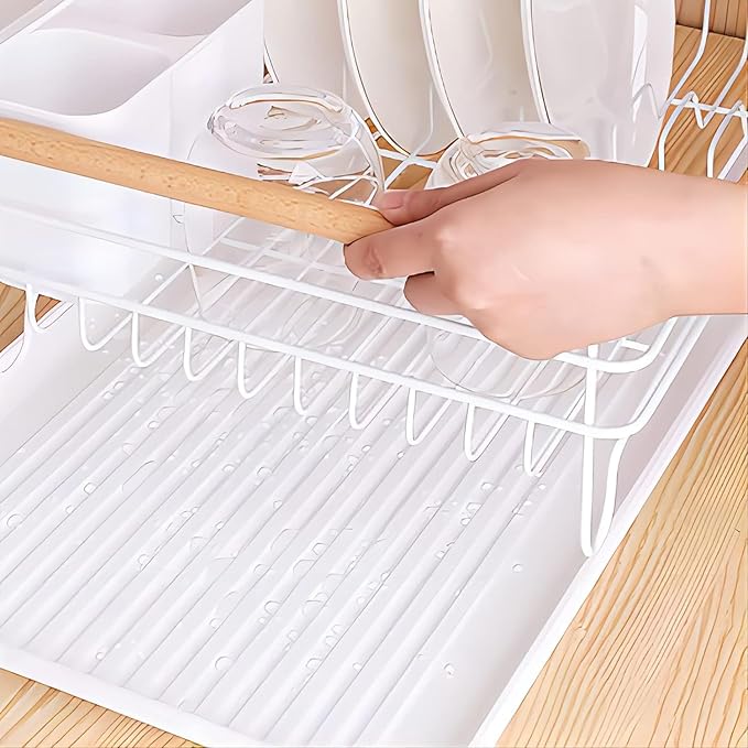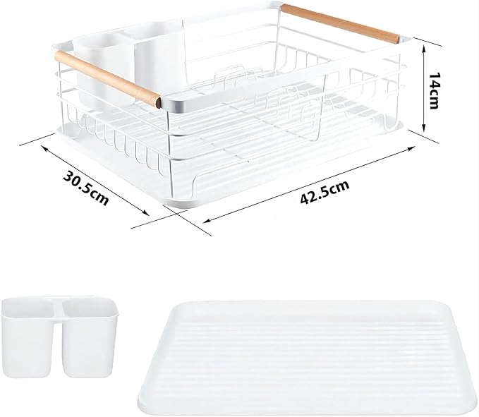水切りラック 食器 水切りかご 食器乾燥ラック 横置き 錆びない 木製ハンドル 大容量 キッチン収納 ディッシュラック 皿立て 箸収納 多機能 持ち運び簡単 組み立て不要 省スペース ホワイト