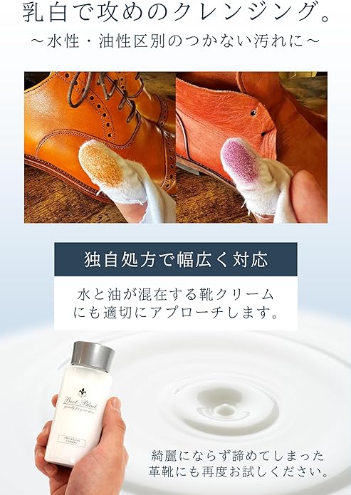 古い靴クリームの除去や染み付いた汚れ落としに効果的。