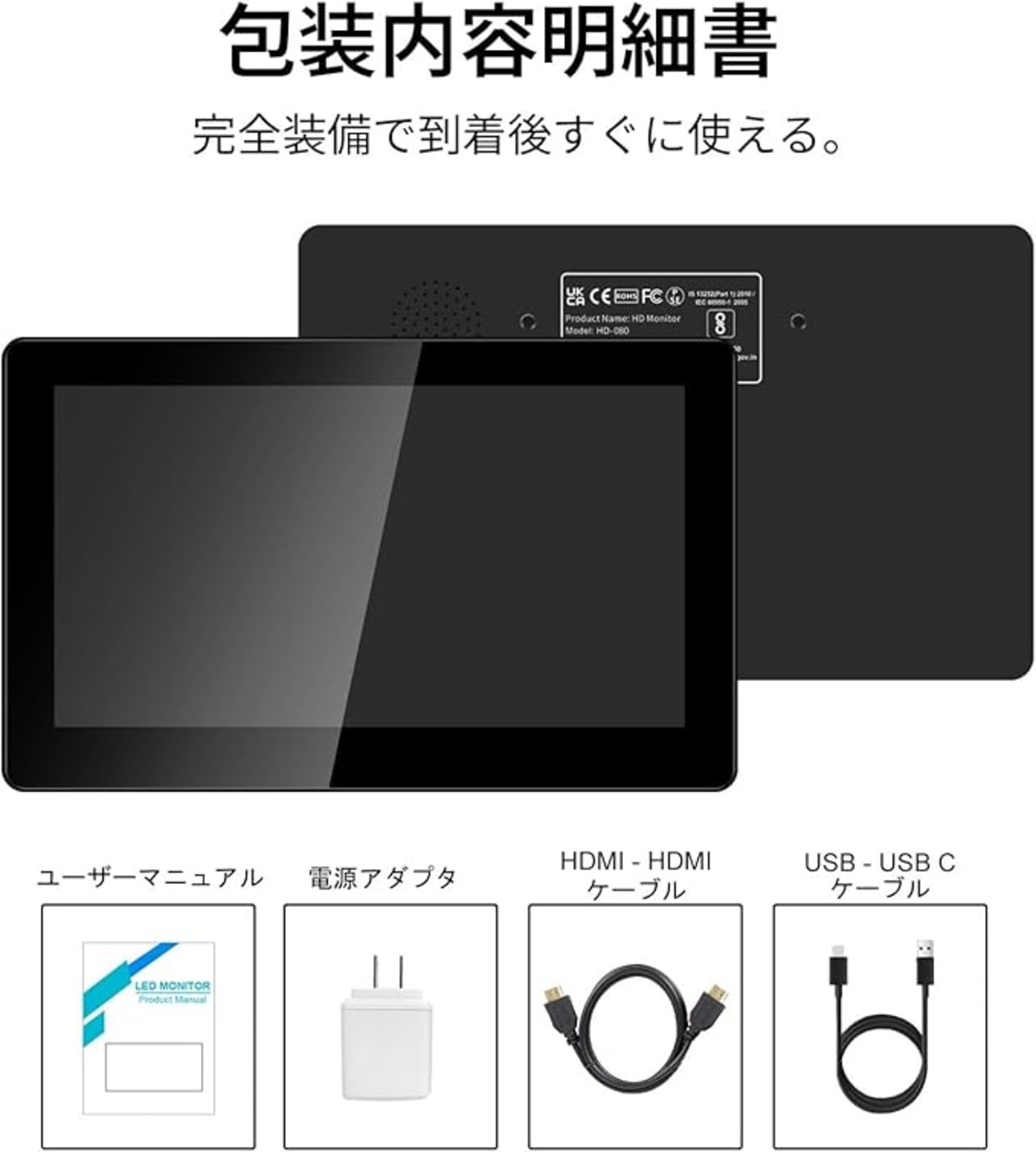 【多彩な接続性】8インチ小型モニターは2つの標準HDMIポートと1つのUSBCポート(電源/タッチ用)を装備し、ノートパソコン、デスクトップ、PC、PS3/4、ゲーム機など様々なデバイスに簡単に接続できます。追加のドライバは必要なく、プラグアンドプレイだけで使用できます。