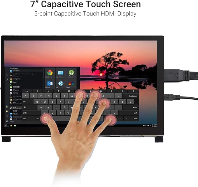 高感度タッチスクリーン:最大5点マルチタッチに対応した静電容量式タッチパネルを搭載。ドライバのインストールは不要で、Micro USBとHDMIケーブルでRaspberry Piと接続するだけですぐに使用できます。