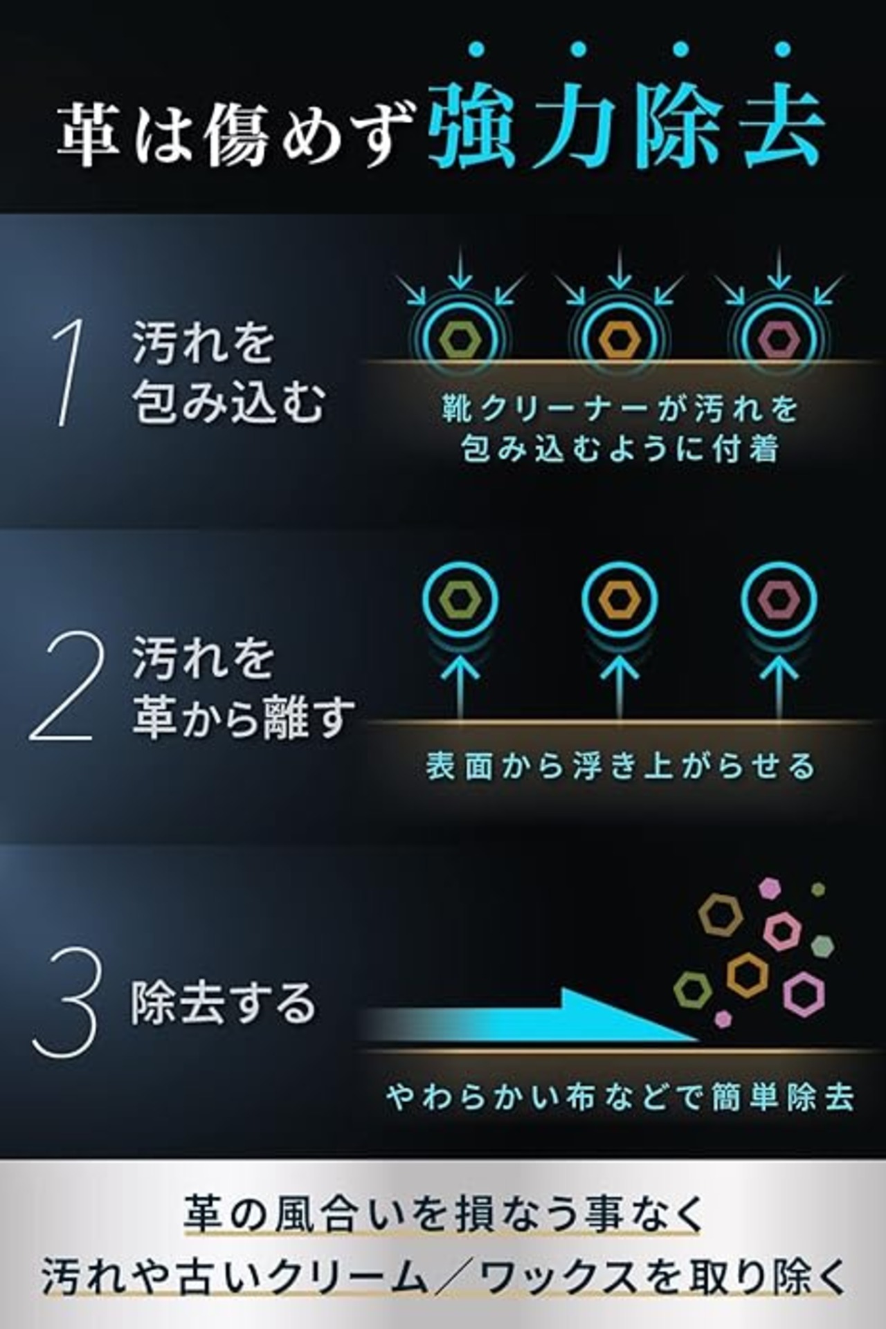 汚れを取り、革に適度な光沢を与える汚れ取りクリーナーです。