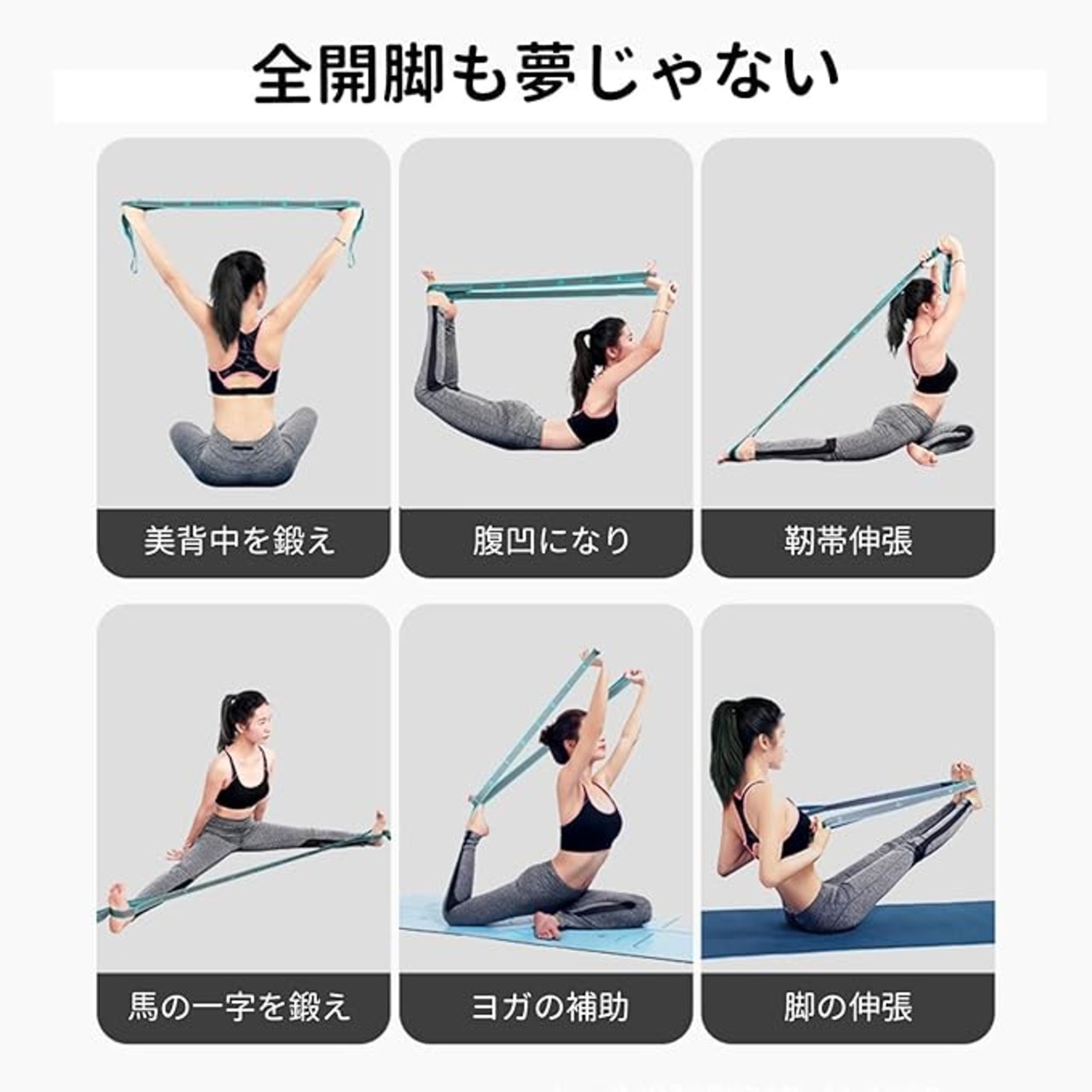 ストレッチバンド フィットネスバンド レッグストレッチャー 高弾性 11段階の強度 大人用 男女共通のストレッチベルト バレエ/ヨガ/ダンス/体操/バレエ/テコンドーなど器具 ヨガストレッチストラップ トレーニングベルト 滑り止め 調整可能 柔軟運動【自宅で本格ストレッチ】