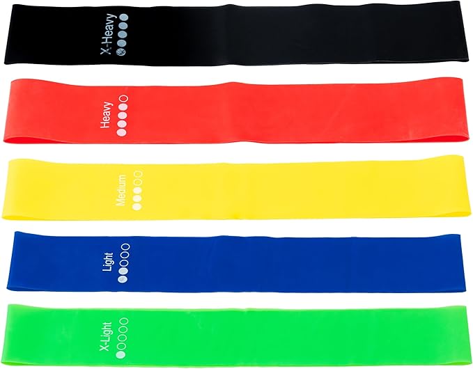 Mcm&Company ヨガバンド 5種抵抗5本セット 【パーソナルジム アスク監修】 ゴムバンド グリーン(Xライト)/ブルー(ライト)/イエロー(ミディアム)/レッド(ヘビー)/ブラック(Xヘビー) TPE 長さ60cm 幅5cm A102