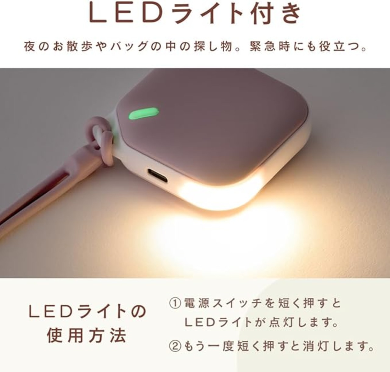 ◇ライト機能つき。家の鍵穴を探したり、いざという時に便利なLEDライト機能がついています。