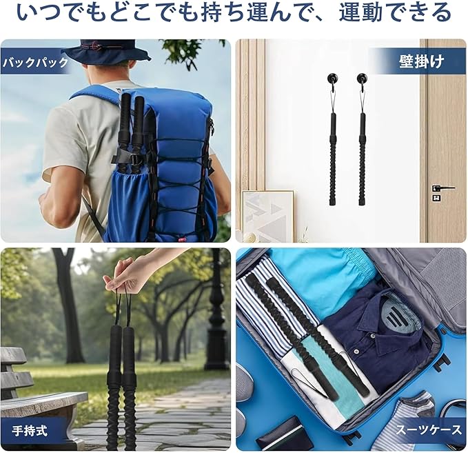 ✔️【耐久性のある素材】このコードレストレーニングロープは高強度スチール製で、優れた靭性と弾力を兼ね備えています。さらにシリコンカバーが錆を防ぎ、長期間使用しても変形しにくい設計。トレーニング効果を最大化する耐久設計を実現しました。表面はチップに強い加工でキズや剥がれにも強く、長期間美しさを保ちます。着脱式のシリコンヘッドで家具や壁も傷つけません。