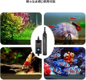 温度可変式 水槽ヒーター:サーモスタットが付きで、ヒーターは温度検知ができるようになり、温度検知しながら、設定温度に従って加熱します。温度管理がもっと簡単になります。