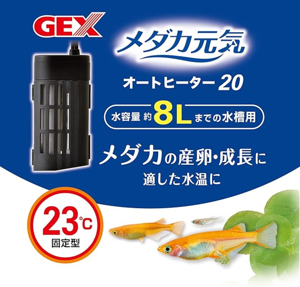 GEXジェックス メダカ元気 オートヒーター 20 23℃自動保温 縦横設置 安全機能付 SP規格適合 2年保証 約8L以下の水槽用 20W
