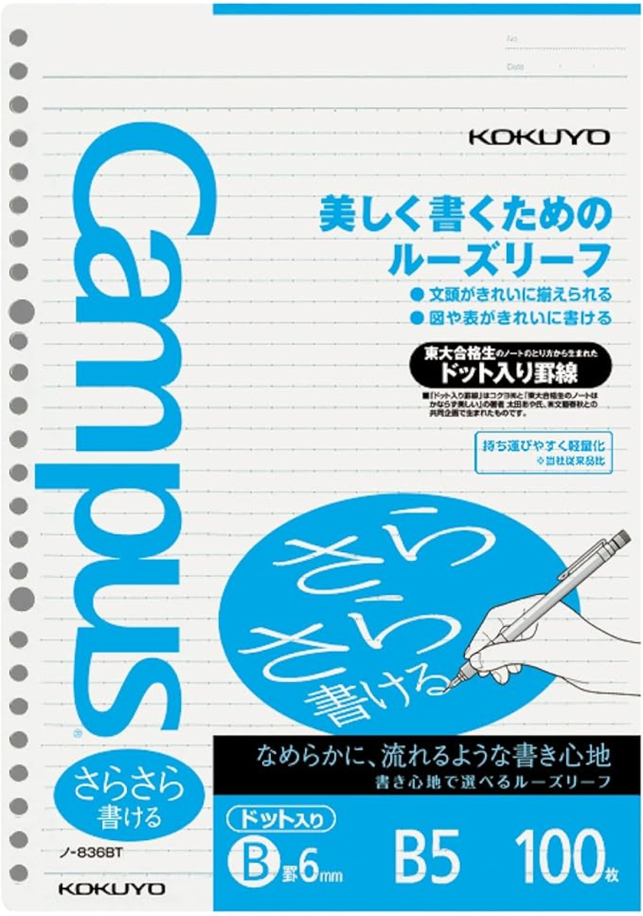 コクヨ キャンパス ルーズリーフ さらさら書ける ドット入り罫線 B5 B罫 100枚 ノ-836BTN