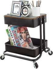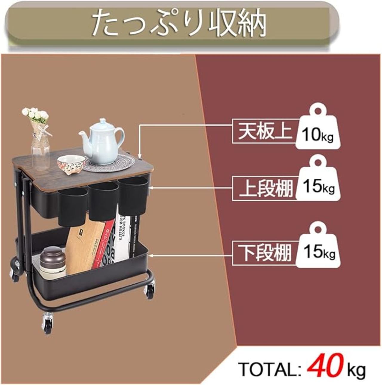 Melody House ワゴン キャスター付き 2段 キッチンワゴン スチール 天板 カラーボックス キャスター付き スリムラック キッチン収納カート ワゴンラック サイドテーブル スチール 隙間収納 ボックス 収納棚 小物収納 浴室 ブラック