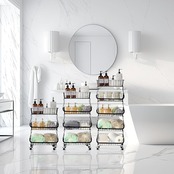 【自由に組み立て、幅広く使える】本製品はスタッキング式なので、お好みで1段から5段まで自由に組み立てられます。またはバスケットを一個一個を分けて収納ボックスとして、食器、調味料、食材、台所の小物などの収納にも適用します。使い方はアイディア次第です。
