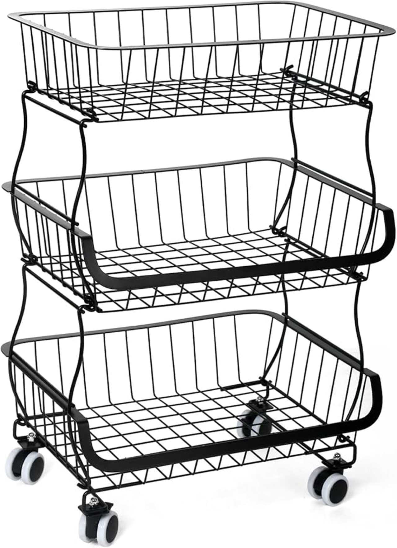 ONEDONE キッチンワゴン キャスター付き ワゴン キャスター付き キッチン収納 カート ラック バスケット 大容量 各段耐荷重10キロ 多機能ランドリー収納 調味料/皿/野菜/服/雑貨収納収納 洗濯室 バルコニー 組立簡単 メタル製 黒 (3段)
