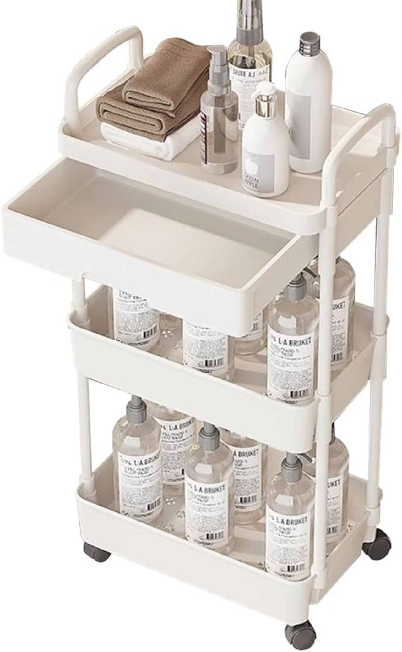 【移動が簡単】収納カートの底面には360 自由に回転するキャスターが付いているので、収納棚が物でいっぱいになっても簡単に移動できます。移動する必要がない場合は、キャスターをロックして滑り落ちるのを防ぐこともできます。