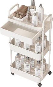 VARMHUS キッチンワゴン キッチンラック 収納ラック キャスター付き 引き出し付き スリムワゴン 3段 キッチン収納 隙間収納 小物収納 おしゃれ 耐荷重性≥12kg 幅41*奥行き30*高さ76cm ホワイト