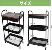 キッチンワゴン 天板 キャスター付き 引き出し付き ラック スチール製 ミニワゴン バスケットトローリー バスケットラック 北欧風 おしゃれ 調味料ラック コンパクト 収納ワゴン オフィス キッチン 移動式 隙間収納 すきま収納 頑丈 3段(ブラック)