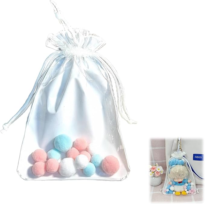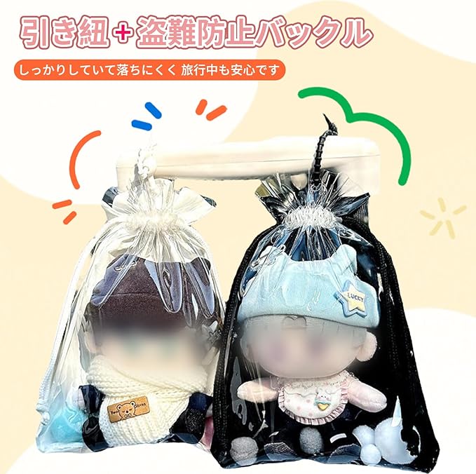 限定商品 痛バッグ ぬいぐるみポーチ 19/21cmサイズ対応 ぬいポーチ 人形の保管場所 ぬい 外出 見せバッグ 推し活グッズ 巾着型 高い透明 防塵 防水 ポンポンボール& 盗難防止ロープ (ホワイト(18*21CM))