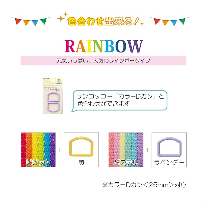 別売りの サンコッコー カラー Dカン 幅25mm に対応しています。