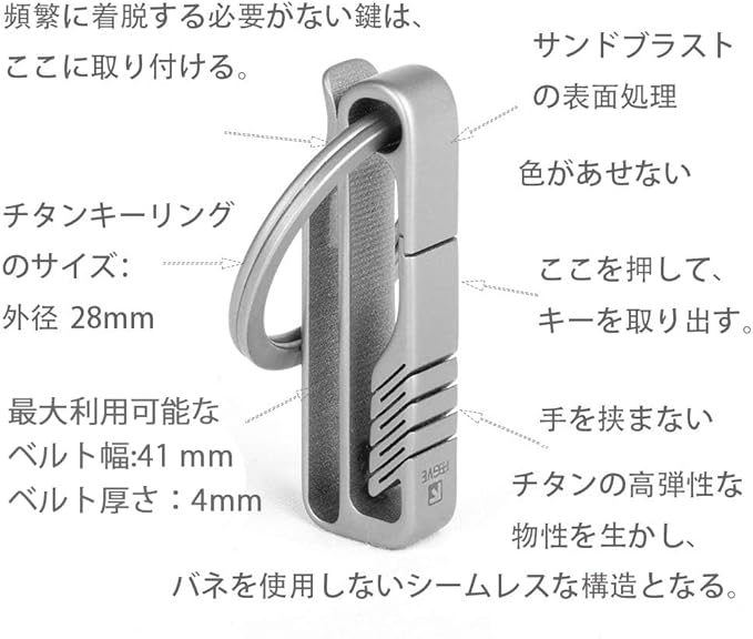 サイズ:キーホルダーの長さ5.2cm*幅0.8cm*厚さ1.54cm/重さ約12g ベルト幅4.1cm用 耐荷重10kg