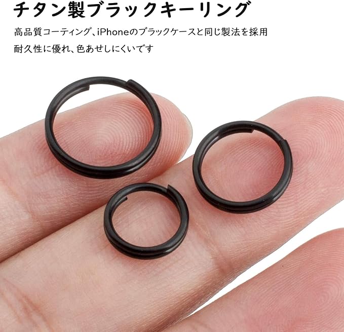 チタン キーリング 黒 キーホルダー リング 丸型 カラビナ 小さい ブラック ミニ 細い 二重リング キーチェーン 金具 錆びない 軽量 DIY工芸品 外徑10/12/14mm (12mm/5個入り)