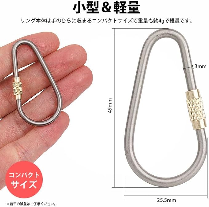 鍵を吊るしてキーホルダーにしたり、バックパックに軽いものを吊るすために使用したりと幅広い用途に使用することができます。