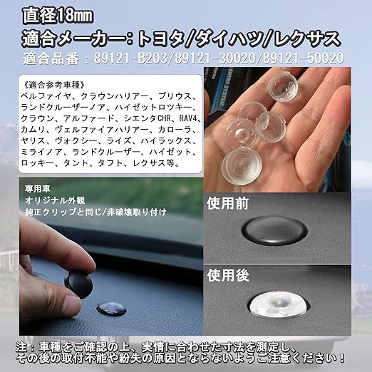 ☆【適合品番/車種(参考)】適合品番:89121-B203/89121-30020/89121-50020。適合参考車種:ベルファイヤ、クラウンハリアー、プリウス、ランドクルーザーノア、ハイゼットロツキー、クラウン、アルファード、シエンタCHR、RAV4、カムリ、ヴェルファイアハリアー、カローラ、ヤリス、ヴォクシー、ライズ、ハイラックス、ミライノア、ランドクルーザー、ハイゼット、ロッキー、タント、タフト、レクサス等。注:車種をご確認の上、実情に合わせた寸法を測定し、その後の取付不能や紛失の原因とならないようご注意ください!