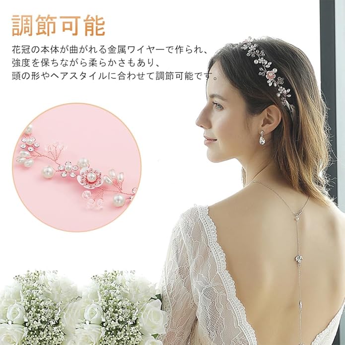 調節可能:花冠の本体が曲がれる金属ワイヤーで作られ、強度を保ちながら柔らかさもあり、頭の形やヘアスタイルに合わせて調節可能です。