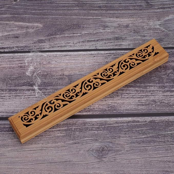 お香立て 横置き香炉 線香炉 線香皿 楠竹製 不燃綿付き 蓋付き 木製 香炉 透かし彫り お香入れスタンド 携帯便利 薫香炉 寝かせる 薫香皿 リラックス 沈静 瞑坐 瞑想 和風古典 茶道 香道 仏壇料亭用 香炉ボックス 唐草柄