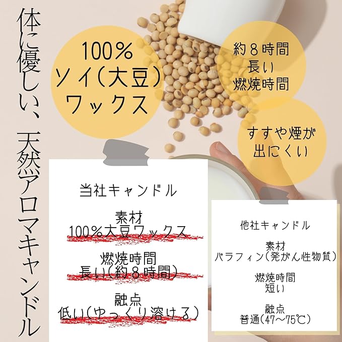 ✅【燃焼時間】 各大豆キャンドルのサイズは45g、直径は5.8CM、高さは2CMです。100%大豆ワックスキャンドルは、パラフィンワックスよりもゆっくりと長く燃焼し、約25~30時間燃焼できます。無煙・無毒で、空気を汚染せず、その日の気分に合った快適な雰囲気を作り出します。