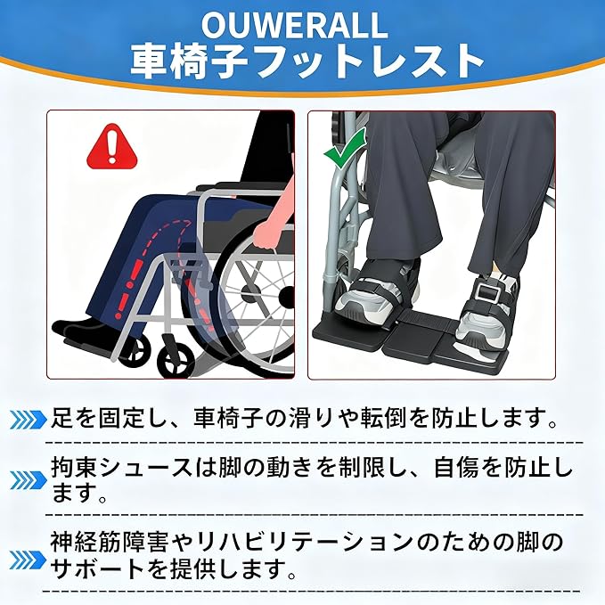 OUWERALL 軽量調整式車椅子用フットレストは、滑り止めペダルと足サポートを備えた高齢者や障がい者向けの2枚組で、カラーはブラックです
