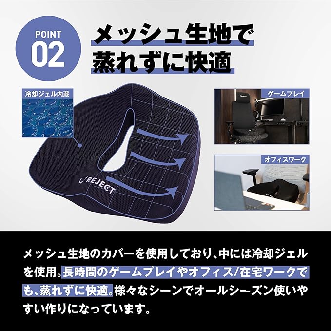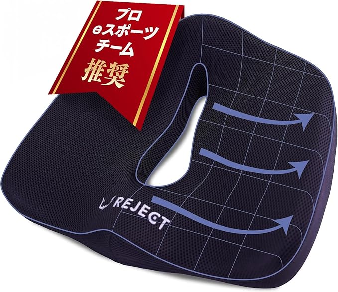 【プロeスポーツチーム監修】 REJECT クッション 椅子 ゲーミングチェア オフィスチェア リモートワーク デスクワーク ゲルクッション 座布団 低反発 GAMING CUSHION (SPLIT TYPE)