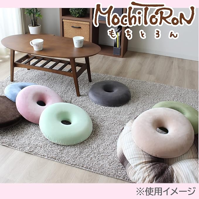 メリーナイト クッション 低反発円座クッション 「もちとろん」 オリーブグリーン 直径約40㎝ チェアパッド ウレタン ドーナツ型 リビング 座布団 在宅勤務 自宅 オフィス デスクワーク ドライブ MTR1001-50