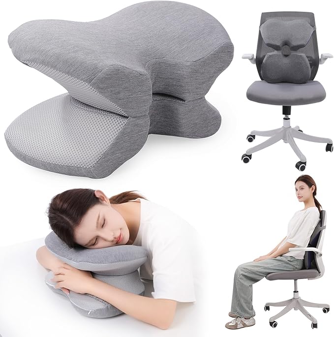 パワーナップピロー お昼寝枕 うつ伏せ 枕 うつぶせ寝 会社 オフィス 仮眠 デスク枕 まくら クッション 昼寝枕デスク (グレー)