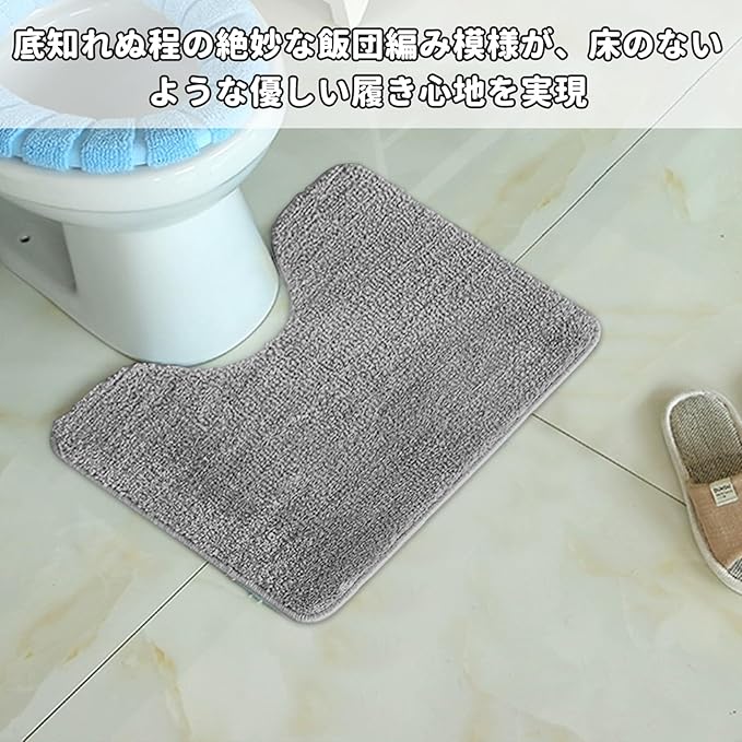 【高品質の滑り止め素材】TPR 底部を採用し、防滑性に優れるとともに耐用性が高く、地面にしっかりと密着します。水を通さない特性で床を保護し、トイレマット 洗える の利便性を備えています。表面は高密度の吸水性素材を使用したトイレマット u 型 グレー は、足の水分を素早く吸収し、足元をさわやかに保って、使用時の快適さを高めてくれます。