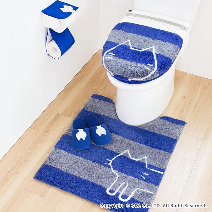 「うちねこ」シリーズのトイレットペーパーホルダーカバーです。スリッパとおそろいのボーダーの生地をねこのかたちにくりぬいて刺繍でくっつけました。