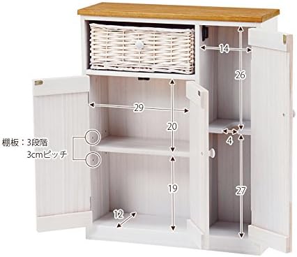 萩原(Hagihara) トイレラック トイレ 収納 棚 【完成品】 カゴ付き ミドル 開き戸 ホワイト MTR-6459 ワイド