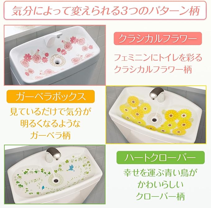 コモライフ 華やぐトイレの手洗いタンクフィルム (3柄 5枚) トイレ 手洗いタンク フィルム 花柄 芳香剤 日本製