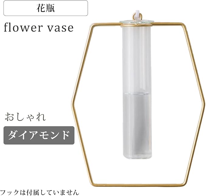 [アップフレーム] 壁掛け 花瓶 一輪挿し おしゃれ 試験管 ガラス フレーム フェイクグリーン インテリア雑貨 (ダイアモンド(植物なし))