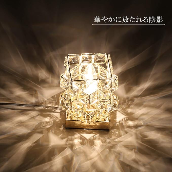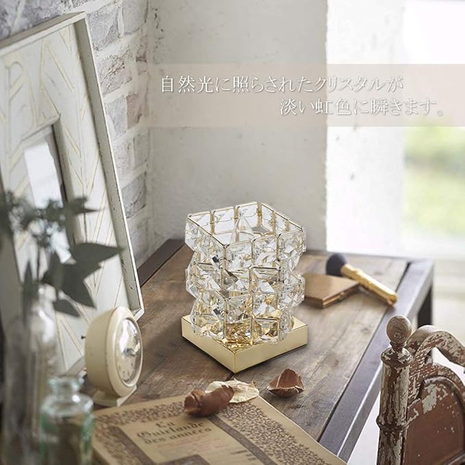 Cerdeco まるでオーロラのような煌き… 空間を彩る クリスタルビーズ 手軽に贅沢 テーブルライト ベッドサイド 雰囲気作り デスクライト インテリア照明 間接照明 LED対応 手作業で作る 寝室 レトロ おしゃれ レインボー 口金E12 TBL16(ゴールド,中型) 【電球なし】