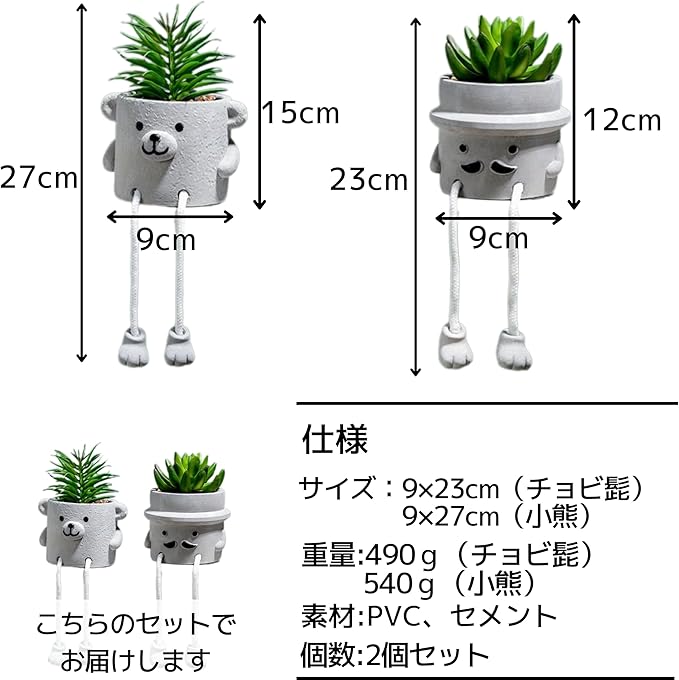 限定商品 観葉植物 フェイクグリーン ミニ かわいい おしゃれ 映える インテリア ユニーク 小さい 【 小熊 & チョビ髭 】