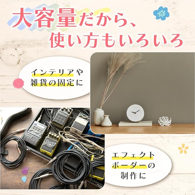 ✅【 驚きの強力粘着テープ 】裏面のシールを剥がすととても強力な両面テープになっています。多少の重さがある物を天井に貼り付けたり、転がりやすいものを固定したりする際に役立ちます。※耐熱温度は約60℃のため、それ以上の温度になる場所には使用しないでください。