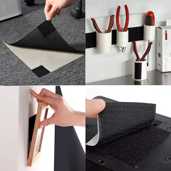 RunsDeep 超便利 超強力面 ファスナー 黒ベース 幅11CM 長15CM 6組 オスメスセット 強粘着裏糊付 業務用 家庭用 工業用