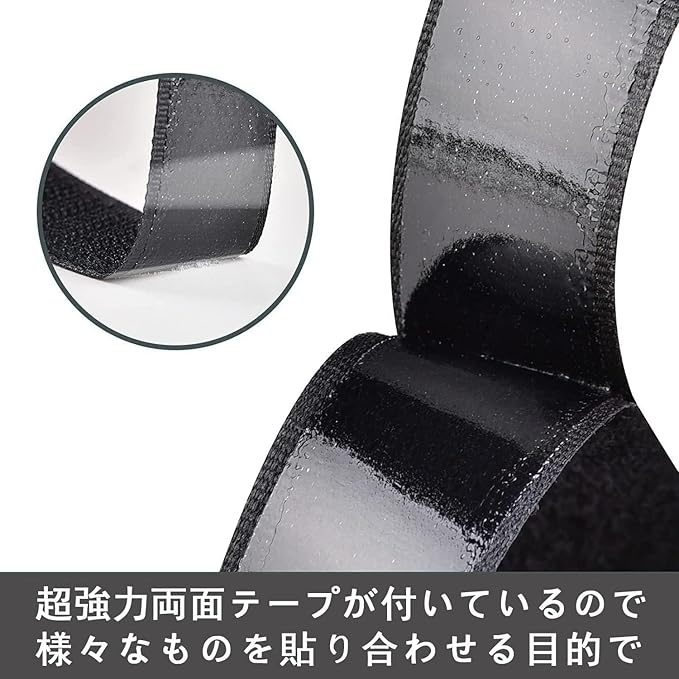 面ファスナー 超強力両面テープ付き マジック貼付テープ ファスナーテープ マジックテープ ベルクロ 強粘着裏糊付 耐熱 防水 超ロング オスメスセット (ブラック (幅25mm 長6M))