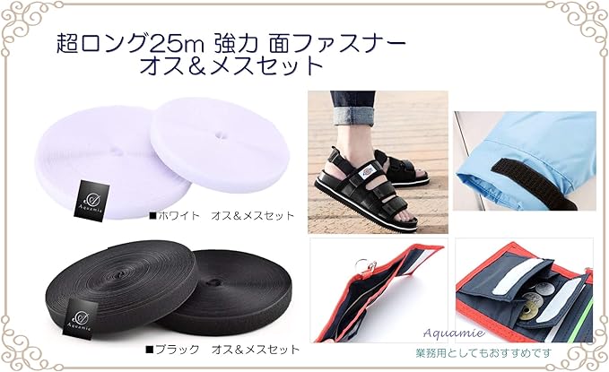 Aquamie 強力 面テープ 面ファスナー オス メス セット 業務用 超ロング 長さ 25m 幅 25mm (黒)