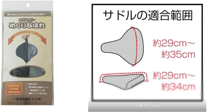 適応サイズ:(約)サドル幅/29-35cm、サドル長さ29-34cm(軽快車用)