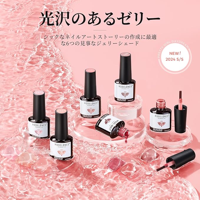 ジェルネイル 透け感:薄く塗るジェルネイル、ゼリーのようなみずみずしい透明感。厚塗りや2~3度塗りでしっかり発色。塗り方や塗布量を変えて、お好みのカラーに仕上げることができます。通学、結婚式、イベント、入学式、オフィスと日常など様々な場面に、ごキラキラ可愛いに