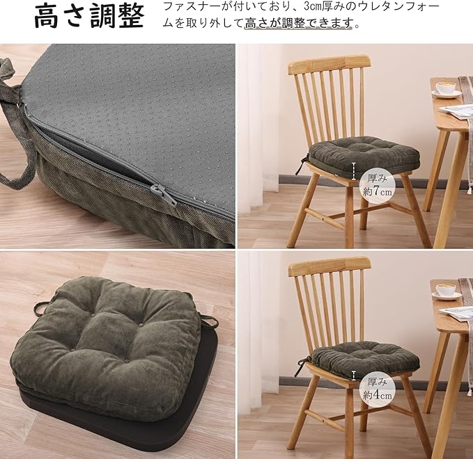 【清潔度・耐久性を保つため手洗いOK】ファスナー付きデザインでこちらのクッションのカバーは取り外して手洗いOKのカバーとなっております。直接肌が触れるクッションだからこそ、いつでも清潔&快適に!また、ファスナーが付いておるから、3cm厚みの高反発ウレタンフォームを取り外して高さが調整できます。自分の好みの高さに調整するのも実現します。